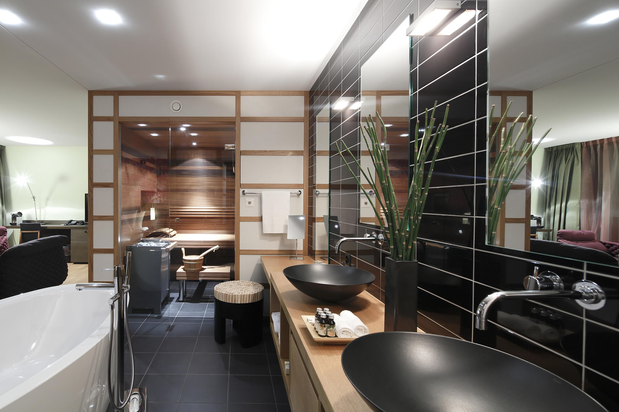 The Spa Junior Suites and Spa Superior Rooms are geared towards the connoisseur. Each is different, offering panoramic views of the lake with picture windows and individual terrace. Choose between Finnish sauna and bathtub in extra-large rooms, or opt for a whirlpool on the terrace, or even an aroma steam shower with colour changing lights.